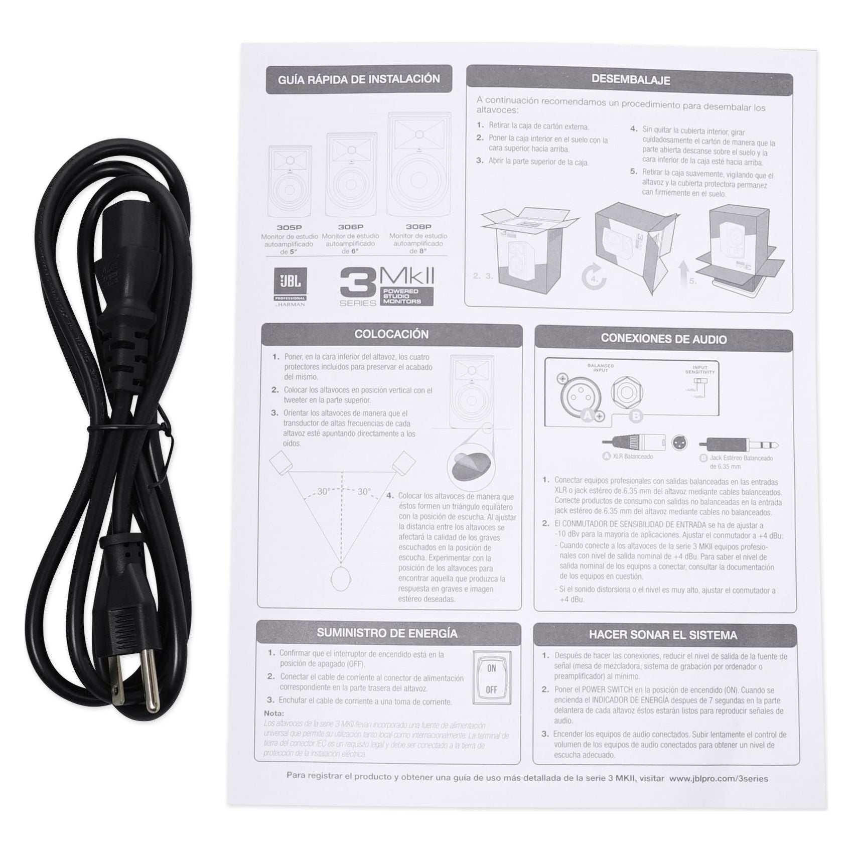 Package: (2) JBL 306P MkII 6" 2-Way Powered Studio Reference Monitor + Pair of Rockville RRS190S High Density Foam Studio Monitor Isolation Pads 7.5" x 9.5" with 3 Angle Adjustments + (2) Rockville Rockville RCXFM20E-B 20 Foot Female to Male XLR Mic Cable Black 100% Copper + (2) Rockville RHTSB 36" Inch Surround Sound Home Theater Speaker Stands