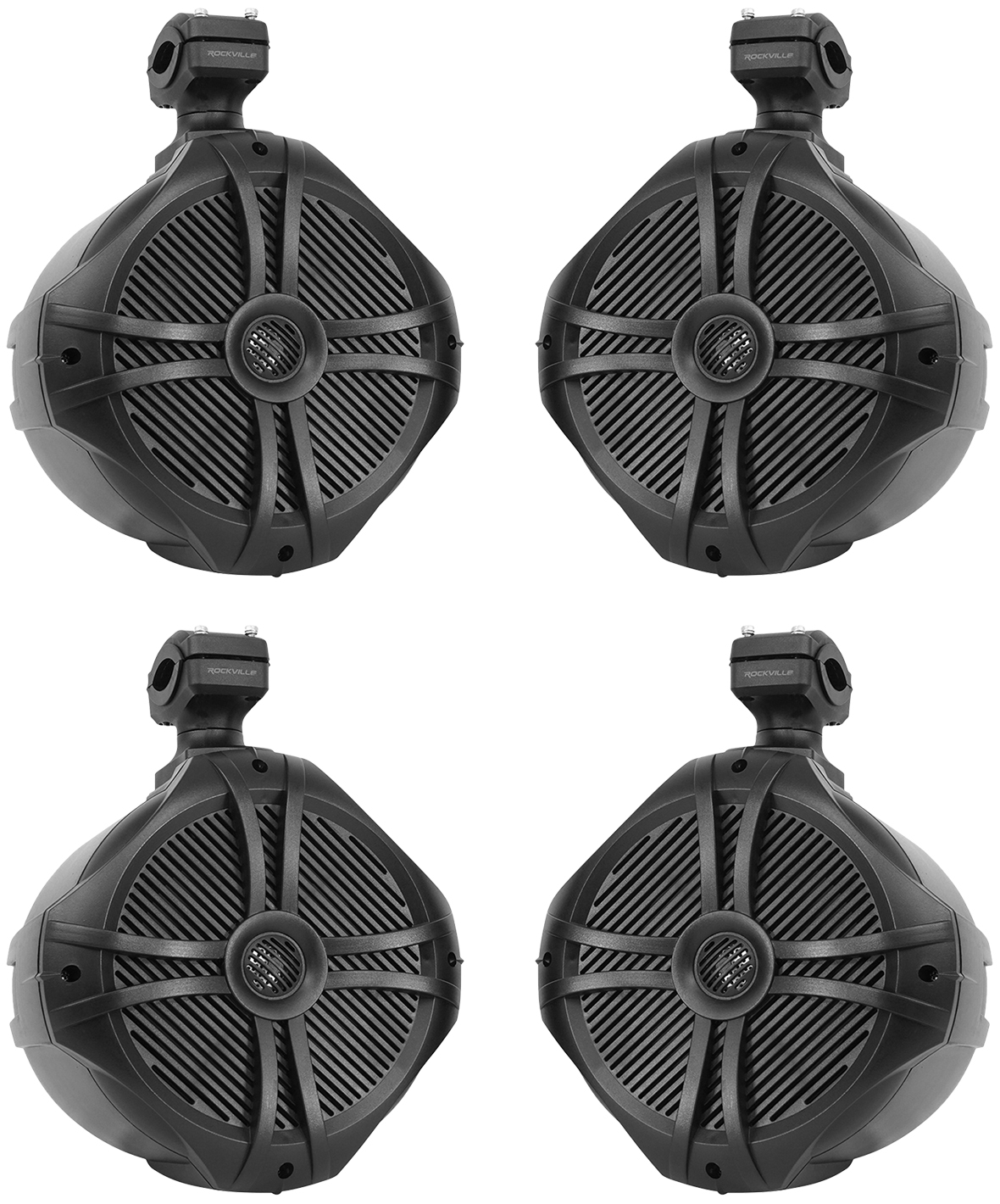(4) Rockville RWB90B Black 8" 300w Marine Wakeboard 360° Swivel Tower Speakers