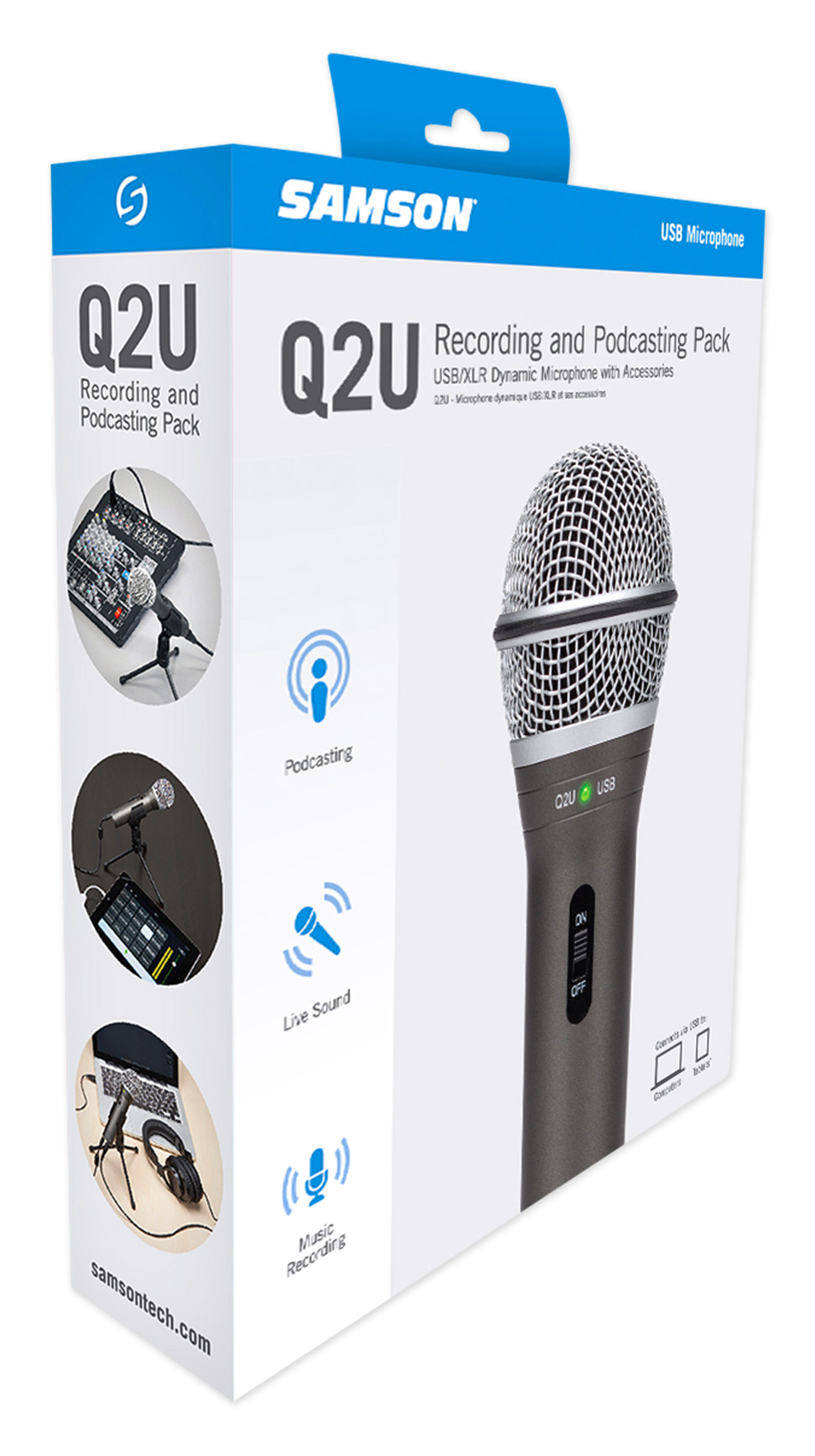 Samson's Q2U combines the convenience of digital and analog audio capture into one dynamic microphone. With XLR and USB outputs, the Q2U is the first choice for home/studio and mobile recording, as well as stage performance. The Q2U is simple to setup and outshines microphones that cost more than twice the price. It comes with a mic clip, desktop tripod stand with extension piece, windscreen, XLR cable and USB cable... A package with everything you need to start recording right out of the box.