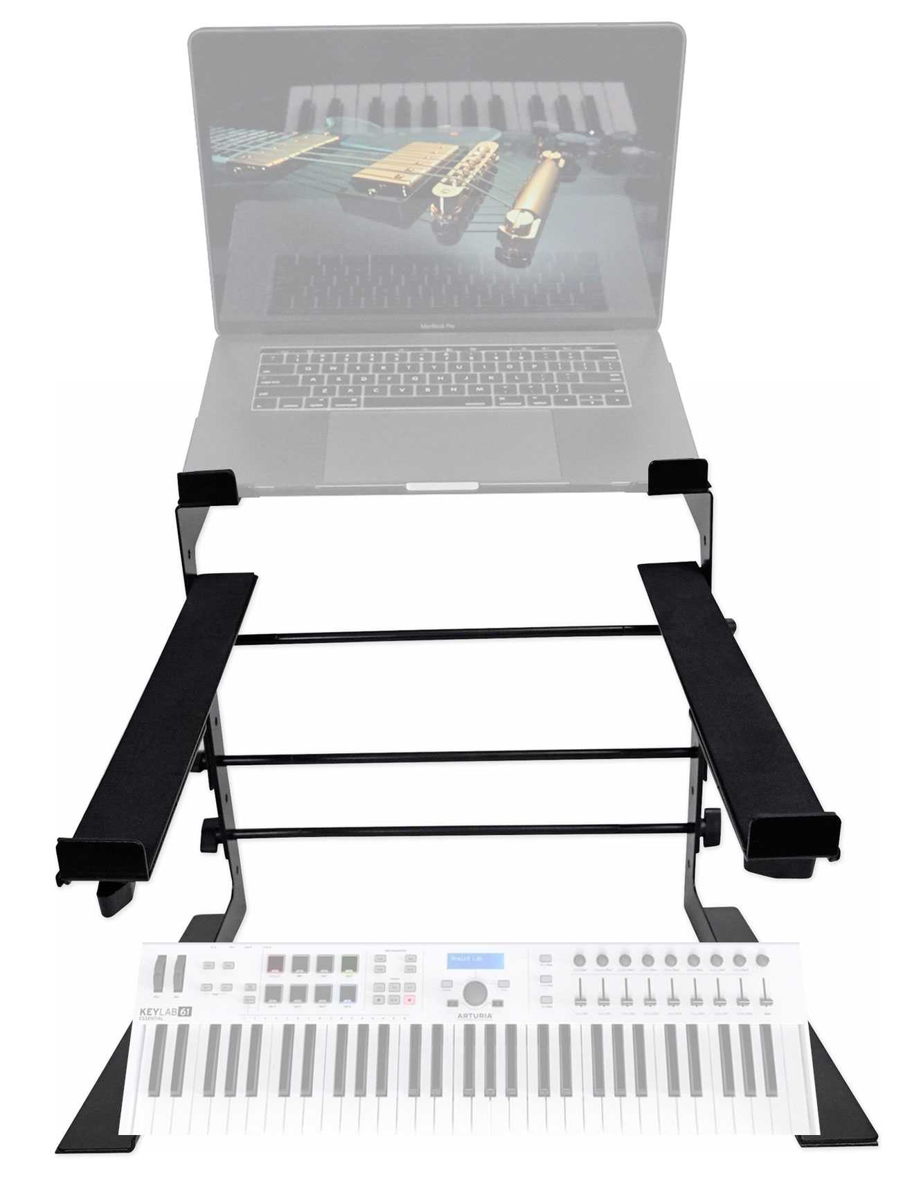 With its dual shelf design, the stand is perfect for professionals who need a dedicated space for multiple devices, such as a laptop and DJ controller, or even two keyboards for music production. The stand’s adjustable width, height, and depth ensure a perfect fit for your gear, providing complete customization for your setup.