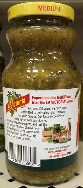 La Victoria Medium Thick'n Chunky Salsa Verde 16 oz is made with sun-ripened tomatillos, fresh jalapeno peppers and just the right amount of spice to add flavor to many of your favorite dishes. It is gluten-free and is also kosher so that it can be uséd by those with certain dietary restrictions. This medium salsa verde has a field-fresh flavor you will enjoy.
