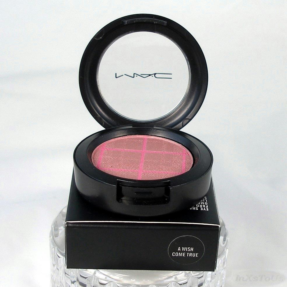 MAC Eye Shadow in the shade A Wish Come True from the limited edition A Tartan Tale Collection. These are a powder eyeshadow with Tartan striping imprinted on the top. The eye shadow is a finely milled, softly textured powders that provides beautiful sheer silky color. A Wish Come True is dirty mauve with bubblegum pink tartan striping. This applies as a dusty pink mauve frost.