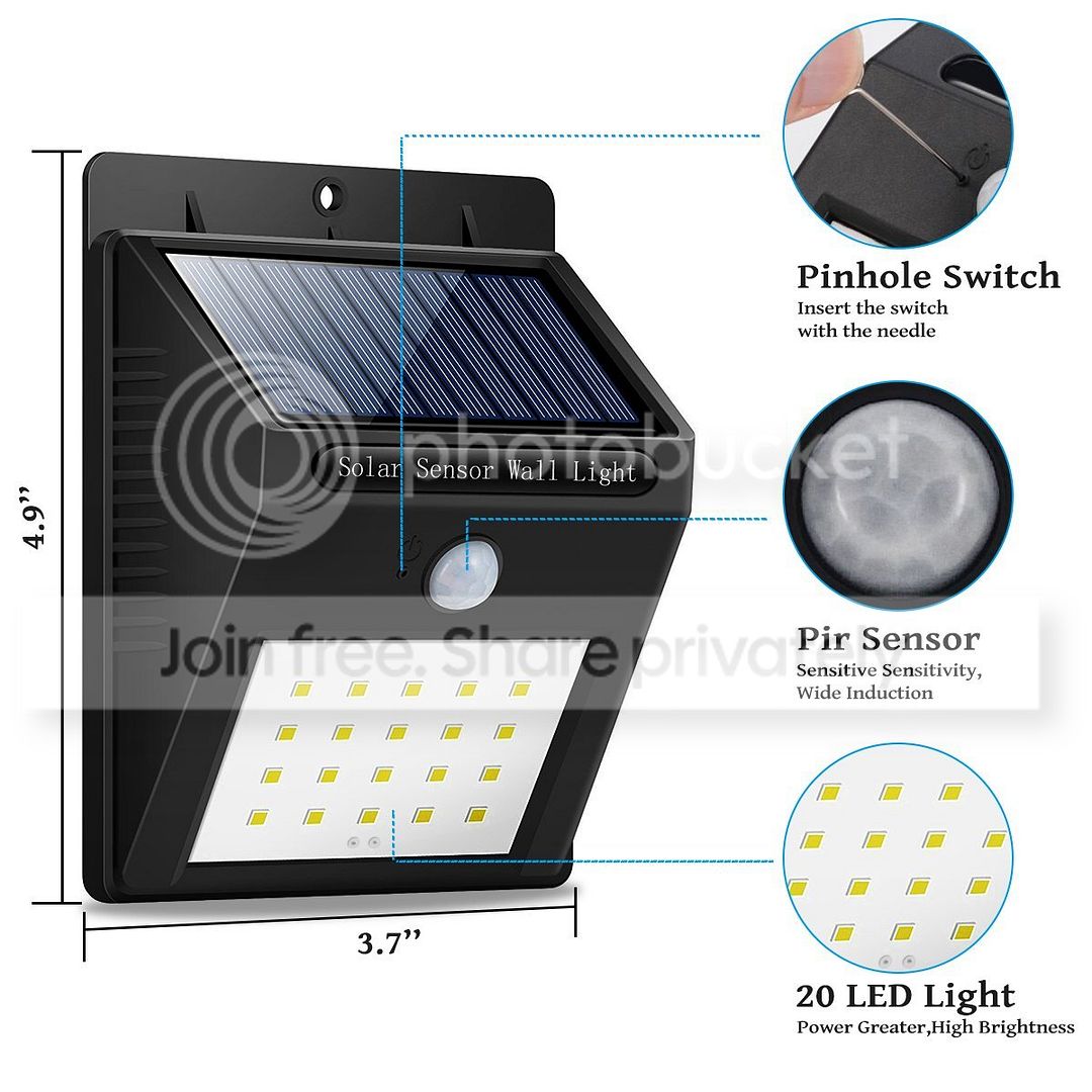 20 LED WIRELESS OUTDOOR SOLAR MOTION SENSOR SECURITY WALL LIGHTS LAMP