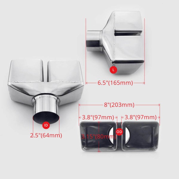 | Outlet Outside Diameter | Quad 3.8"x3.15" (Quad 97mmx80mm) |