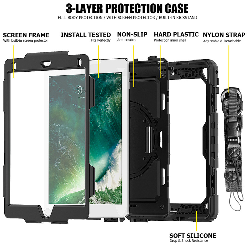 This hybrid armor defender plastic three layers nonslip bumper case provides full body protection against any type of accidental drop.Ideal for kids and children, including boys and girls.