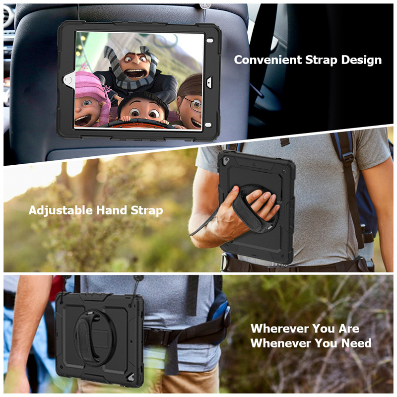 The handle grip helps for securely holding the tablet while on the move.The handle strap is also adjustable, so you can hold your tablet with one hand comfortably.