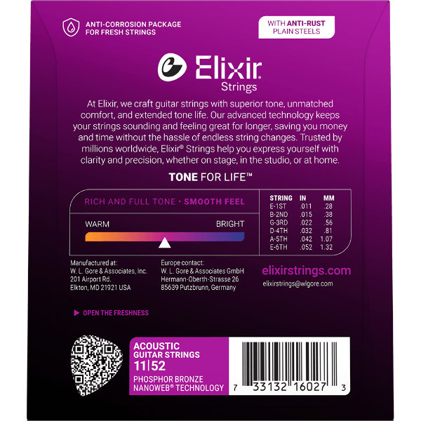 America’s #1 brand of acoustic guitar strings, Elixir Strings, retain their tone longer than any other string, uncoated or coated, according to players. Many players prefer the rich, textured tone of phosphor bronze strings. These Elixir Strings capture the sweet spot of that unique phosphor bronze tone. Elixir #16027.