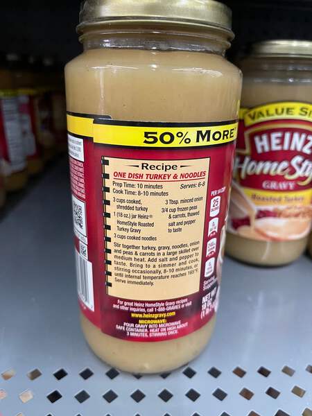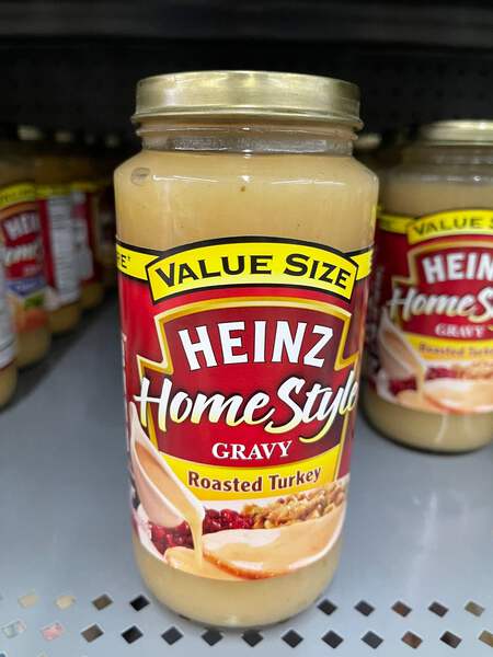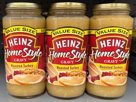 Heinz HomeStyle Roasted Turkey Gravy enhances your family's favorite meals with classic turkey flavor. This tasty gravy is made with real ingredients, including turkey broth, to deliver the smooth texture and tangy taste you love. This turkey gravy contains no preservatives. Use this homestyle gravy to make any meat and potatoes family dinner more enjoyable. Pour this delicious gravy over mashed potatoes, serve it alongside Thanksgiving dinner, pour it over stuffed turkey breast or add some extra flavor to turkey legs. Simply microwave the gravy in a microwave-safe container for about 3 minutes for easy heating. Refrigerate each 18 ounce jar after opening.
