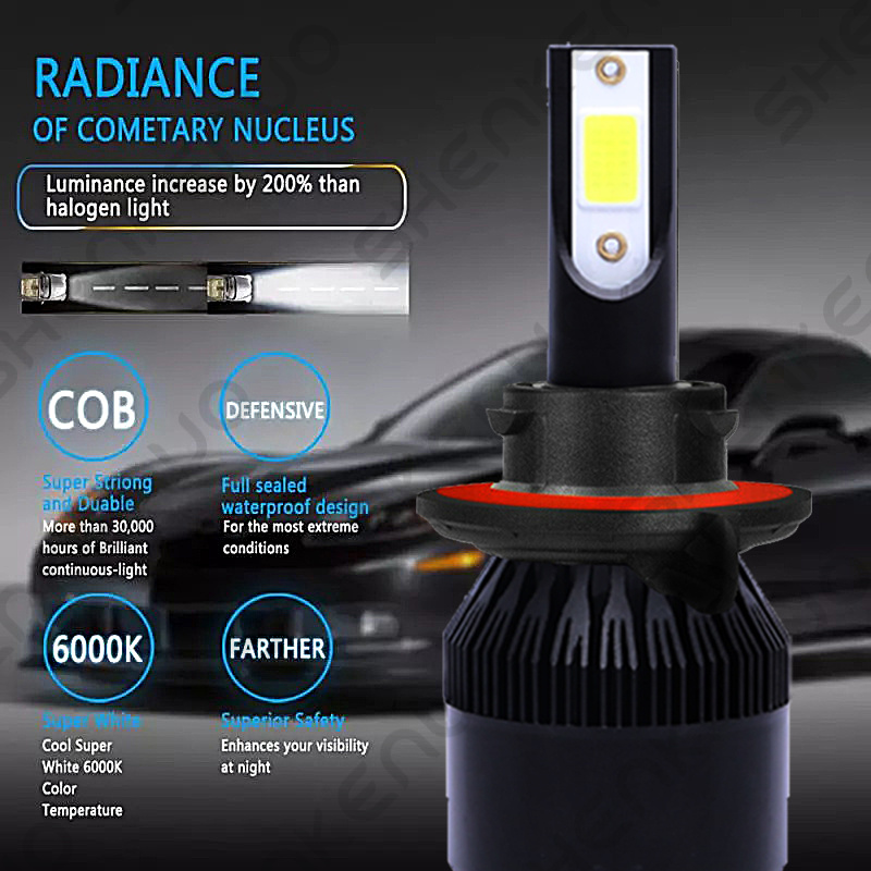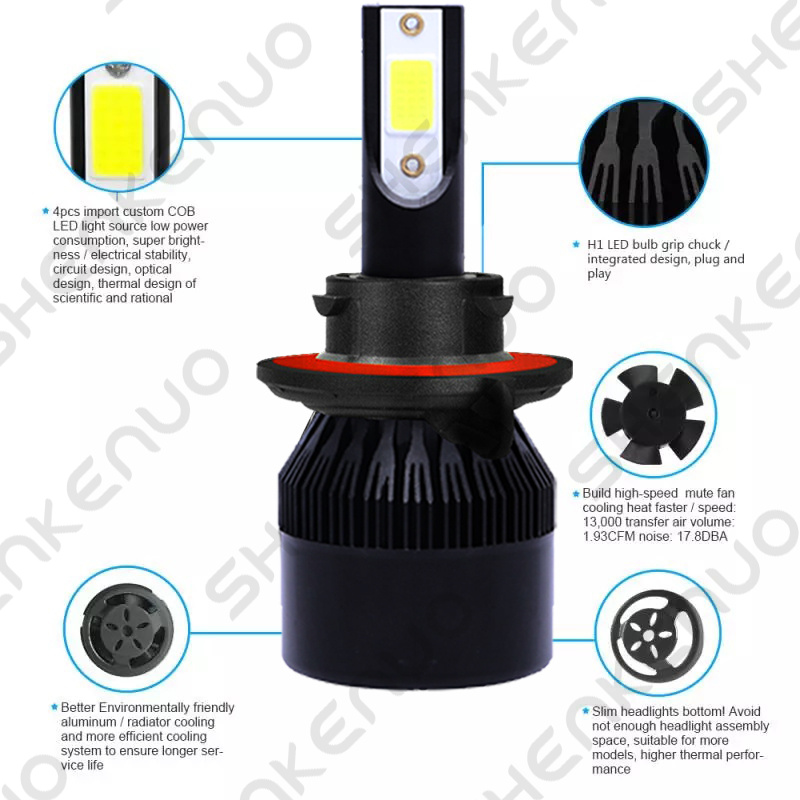 NOTE:Please double check local traffic rules before order, ice blue bulbs are illegal to use in some of the states. Specifications: Plug Type: H13 9008 (High Low Beam) + 9006(Fog Light) 1.Wattage:50W/Bulb 100W/Set 2.Lumens: 6000LM/Bulb 3.Shakeproof and Long lasting up to 60,000 Hours. 4.Color Temperature: 8000K Ice Blue 5.Voltage: DC 9-32V ( Fit 12V,24V Vehicle ) 6. LED type: SHENKENUO COB Chips. 7.Built-in Fans & Ballasts , No Other Fans & Ballasts Required,Smart Efficient Cooling System Fast Heat Dissipation. 8.Low Voltage Protection, High Precision Constant Current driver Chip 9.Easy installation,Just Plug and Play. Automotive LED Bulbs advantages: 1. LED lights than traditional halogen energy, more bright . High focus and max light output with a wider and farther lighting area, Safer Night Driving. 2. Xenon lamp brightness and proximity , but the LED lights light up without delay, to enhance road safety. Instant start no strong currents impact , effectively protecting the car comes with a battery , improving battery life of more than 30%. 3. Fast cooling , the appearance of the most advanced design , thermal structure ingenious and reasonable.Power driver with wide voltage constant current mode , the car can respond to a variety of voltage instability , the effective protection of normal use Led efficient and simple structure. 4. Heating temperature is low , protect the car . Xenon working temperature up to 800 ° -1000 ° , the main reason for the car ignition 5. LED car headlights simple structure, fewer parts than xenon lamps, significantly lower than the xenon lamp failure rates ! Package Content: 4X LED Bulb 1.Compatible List can not show up all Car model. Please check the Correct bulb size of your vechicle. 2.If you are unsure your bulb type, please do remember send message to tell us your car make, model, year and other information which is helpful to check bulb type. |