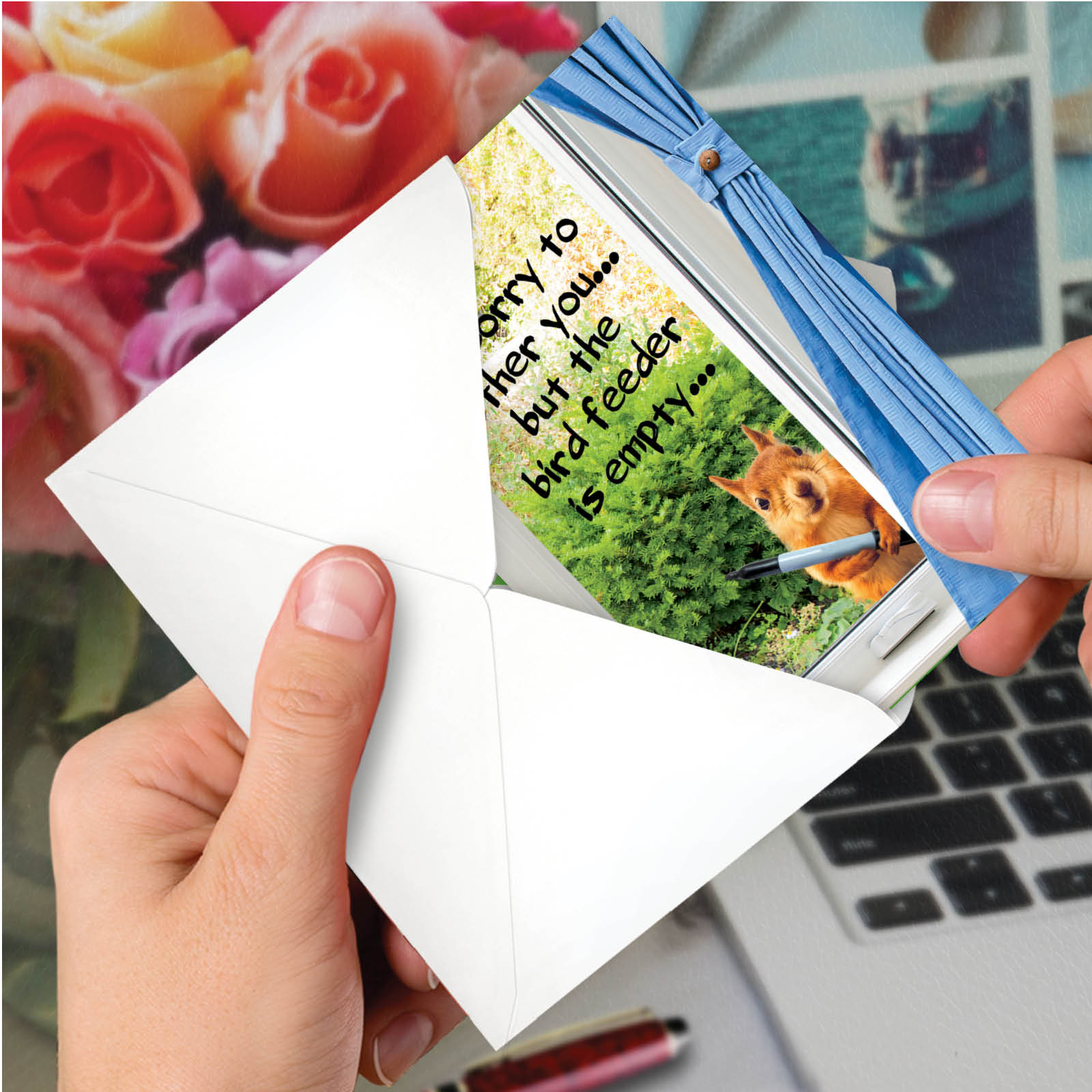 Our good as gold cards are printed on thick, snow white cardstock. All of our notecard sets are made of recycled material (not papyrus, naturally). Our print on demand technology further reduces paper waste and environmental impact. With THOUSANDS of designs and occasions to choose from, you're sure to find the perfect card for every occasion! The high gloss cover photo pops with quality and color, while the inside is matte, creating a smooth writing surface for your heartfelt, joyful all-occasion notes. This year, reach friends, family, and coworkers living near or far, as every greeting card ships with a mailing envelope. NobleWorks, and The Best Card Company, have beautiful designs and funny greetings waiting for you! ORDER NOW!