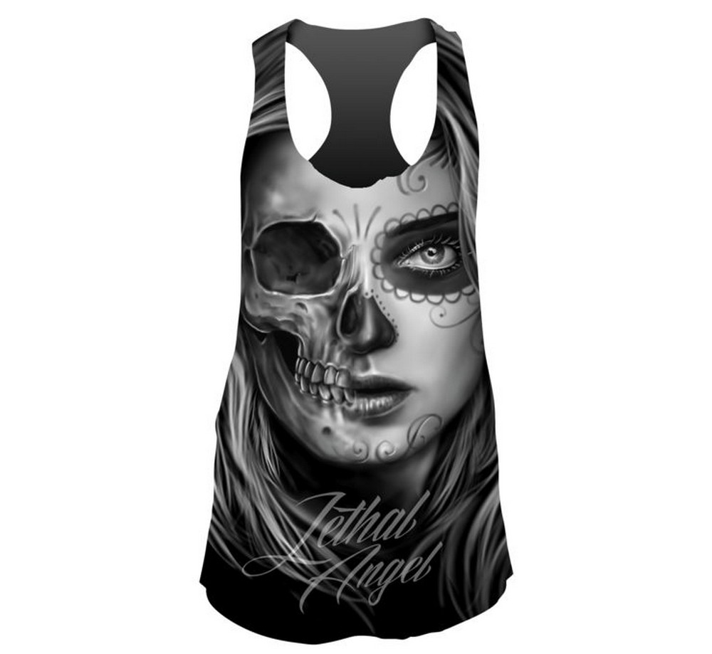 Lethal Threat Half Skull Womens Tank Top Black XXL |