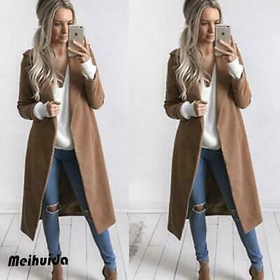 2019 Winter Warm Women Wool Lapel Long Coat Trench Parka Jacket Overcoat Outwear