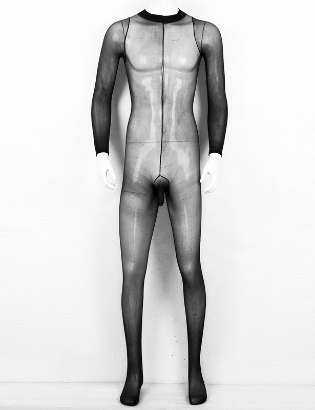 See through sheer full body design with open penis sheath, elastic neck and long sleeves, closed toes.