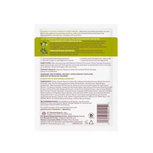 Give hair a deep repairing treatment with the power of antioxidant rich Extra Virgin Olive Oil. Palmer's Olive Oil Formula Deep Conditioner, a super creamy intensive conditioner, is loaded with Extra Virgin Olive Oil and fortified with our exclusive Botanical Scalp Complex blend to provide essential vitamins and minerals to dry, damaged hair to penetrate deep and restore moisture, shine, and strengthen weak brittle hair, helping it grow longer and minimizing breakage while leaving hair silky and healthy.