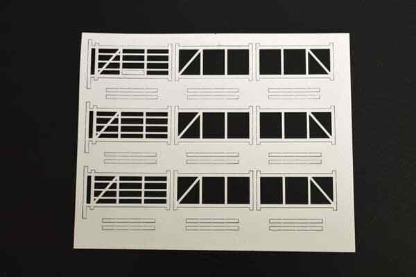 A pack of three laser cut OO gauge GWR style gates. Ideal for Great Western Region layouts in cattle docks & pens & general lineside scenes. Cut from 0.8mm laserboard to produce a very durable gate kit. Very easy to build, from three layers of plastic parts taking just a minute or two to assemble. Each gate spans approx 51mm (12ft 9in in real life, including posts). There's lots of uses for these on your OO scale model railway layout or 1:76 diecast diorama.