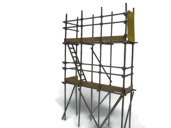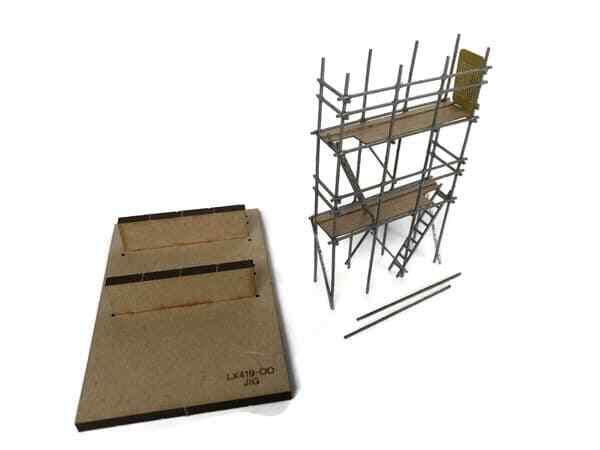 A laser cut kit to build a scaffolding tower as shown in the photos above. A nicely detailed kit, perfect for detailing a building site, street scene on industrial setting on your OO gauge model railway layout or diecast diorama.