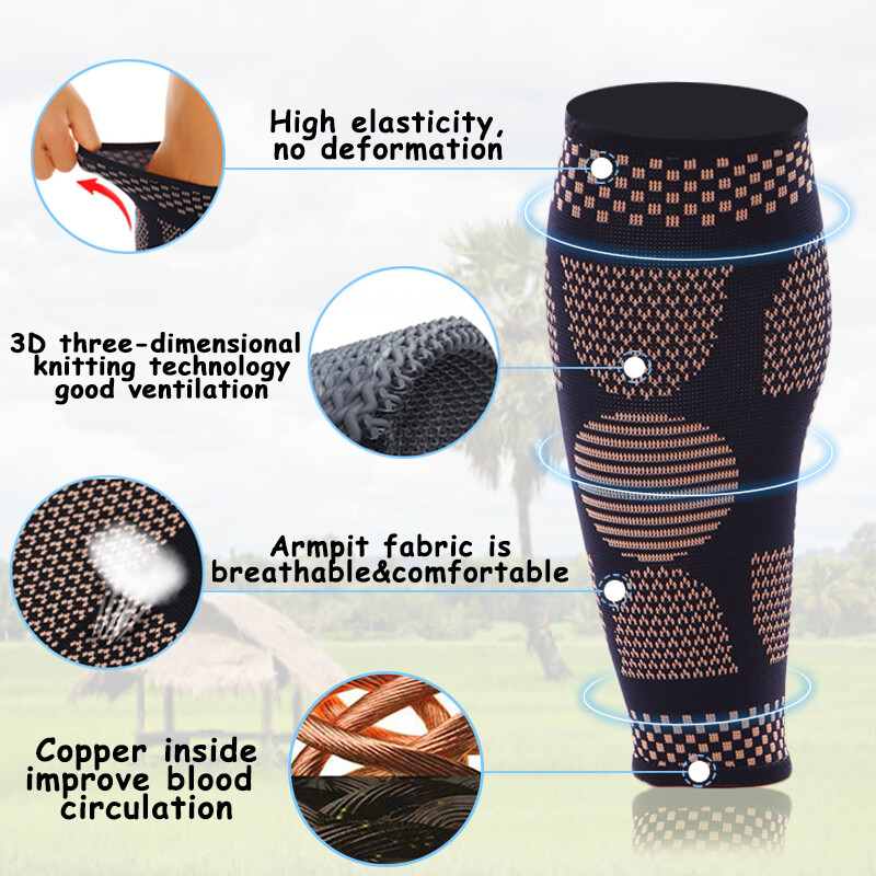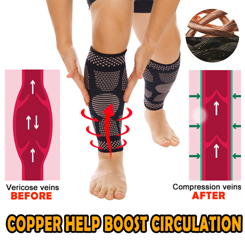 Copper Compression Calf Sleeves Shin Sock Support Brace Running Leg Sport Relief