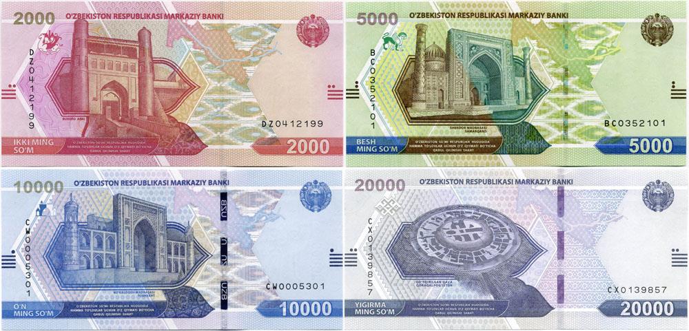 NEW SET 4in1 UZBEKISTAN ex.USSR BANKNOTE 2000+5000+10000+20000 SUM 2021y UNC