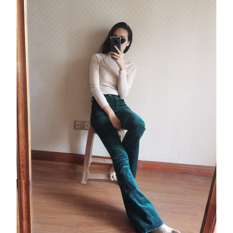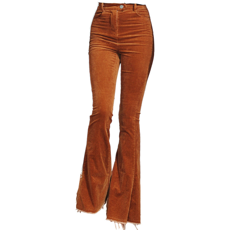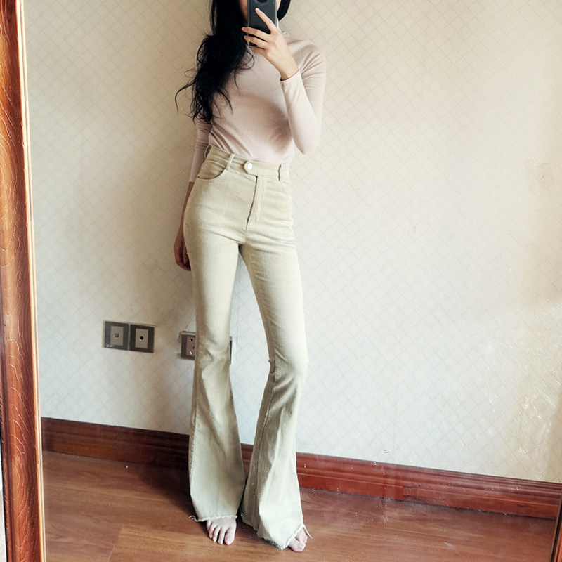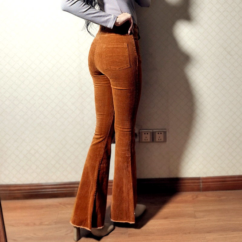 Women's Corduroy High-Waist Flared Pants Tight-Fitting Trousers