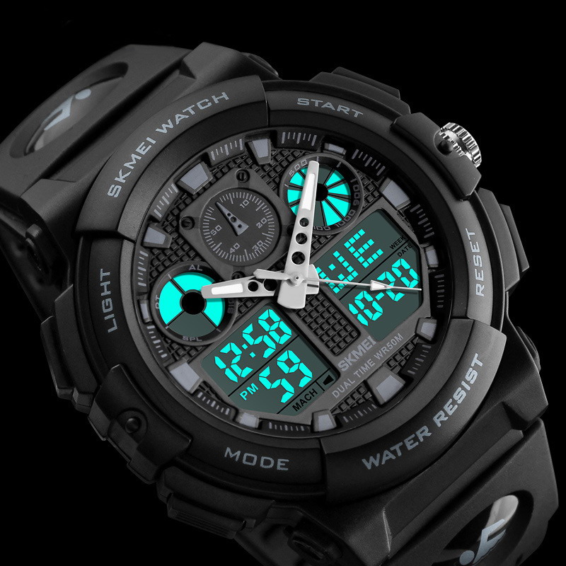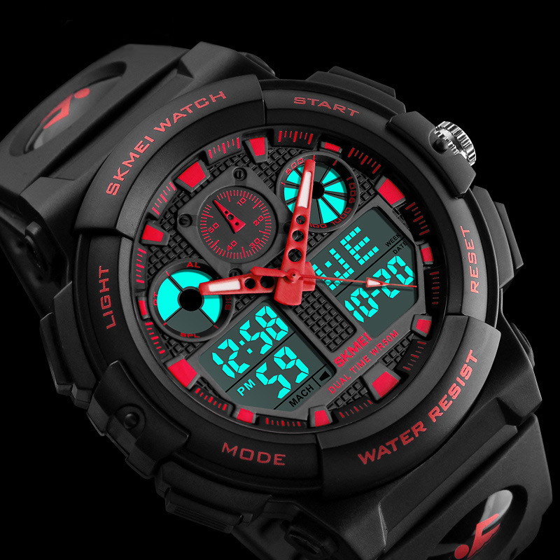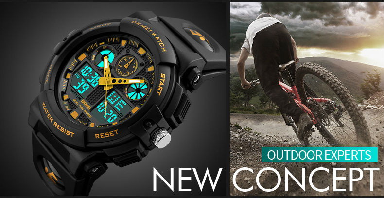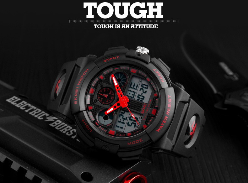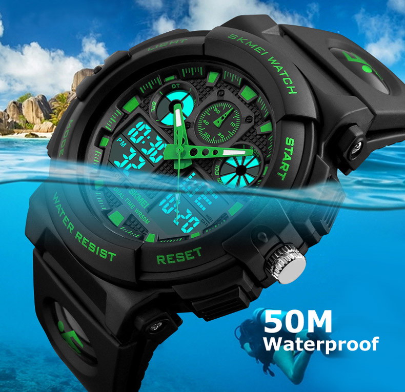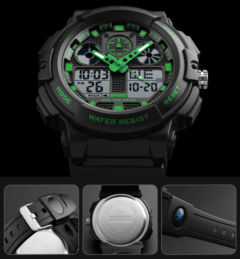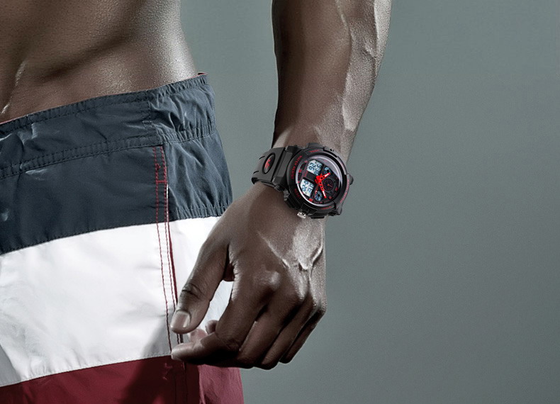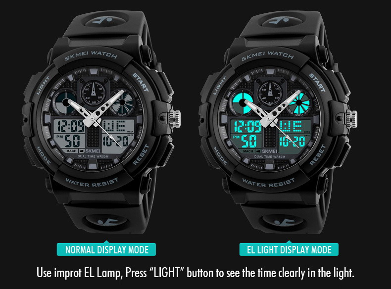 Fashion Sports Wrist Watch, Analog&Digital Watch, Stop Watch, Chronograph, Alarm, Date, 12/24 Hours, 50M Water Resistant, LED EL Back Light display.