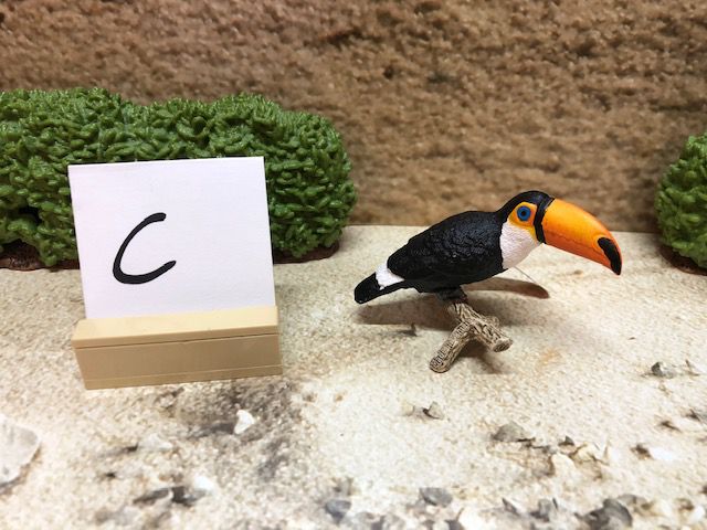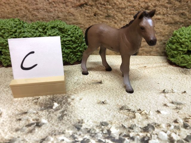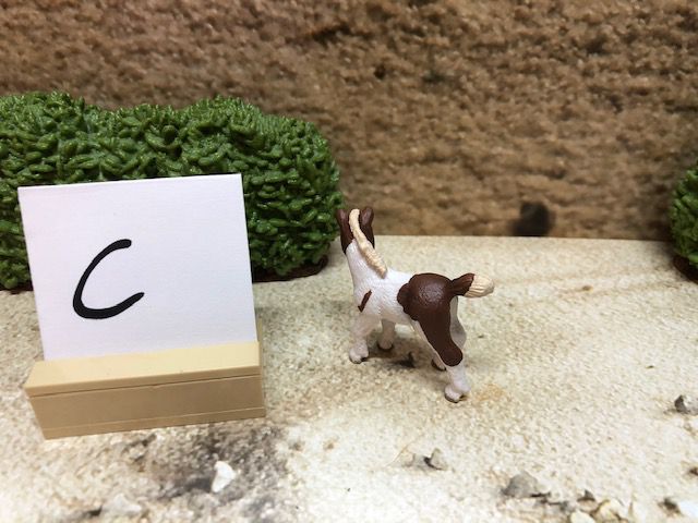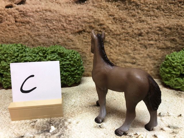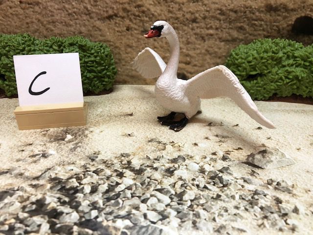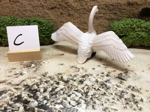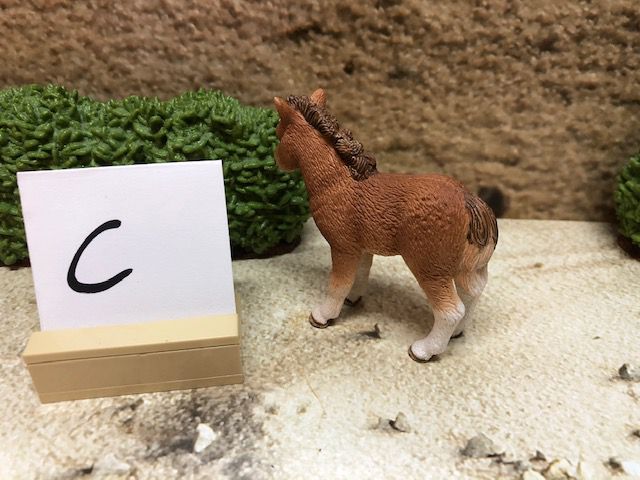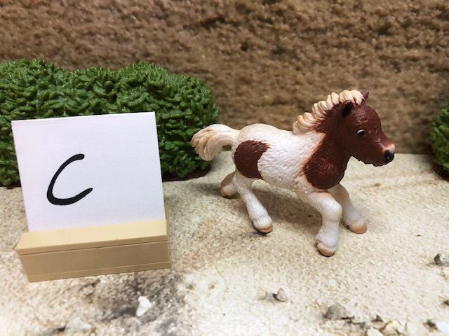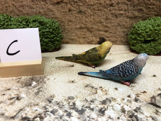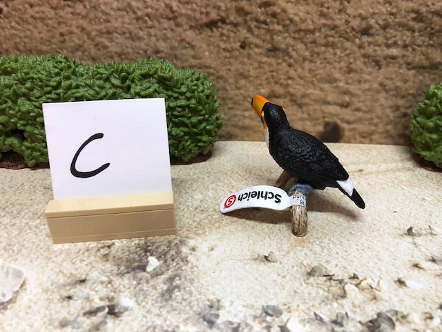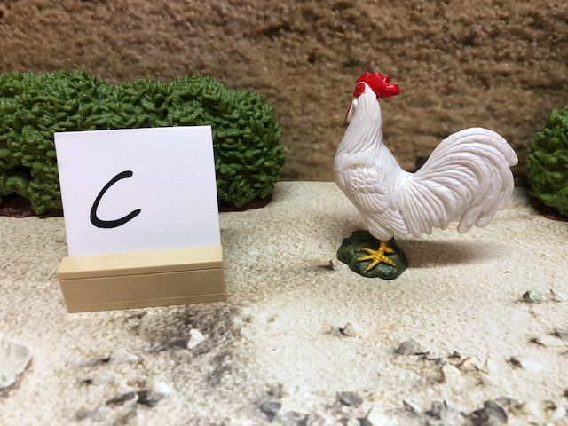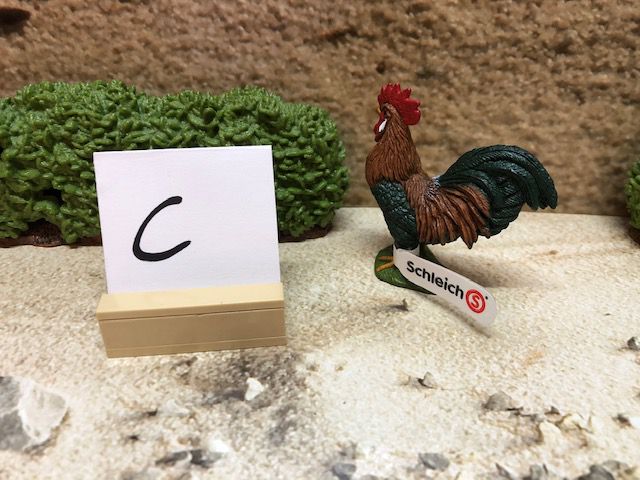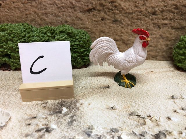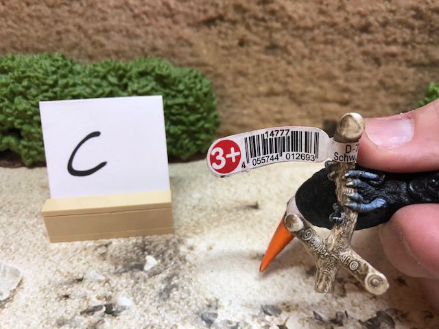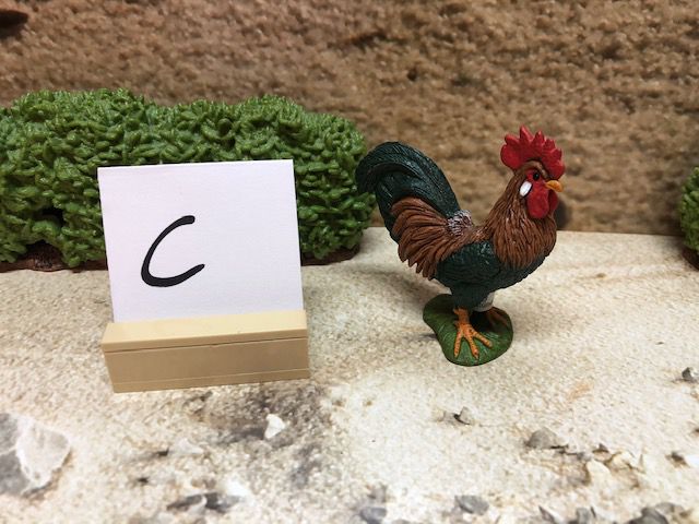 Die Dekoration, wie z.B. die Sträucher und den kleinen Aufsteller mit dem Buchstaben darauf, gehören nicht mit zur Auktion. Der Buchstabe ist nur dafür da, damit wir nach dem Kauf wissen, in welcher Kiste sich das Tier oder die Figur befindet.