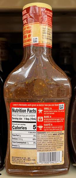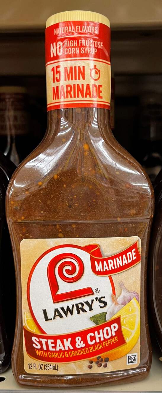 Lawry's Steak & Chop Marinade brings your favorite steakhouse flavor home for the whole family to enjoy. It’s a robust blend of garlic, cracked black pepper, mustard, caraway seed and a splash of lemon juice. On beef, chicken, pork or ribs, it can't be beat. Our 15-minute marinade turns any cut of meat into a five-star masterpiece. And, it only takes 15 minutes to add zesty flavor and unrivaled tenderness. Lawry’s Marinades work great no matter how you use them – as a chicken or steak marinade, a pork chop seasoning, a burger mix-in, or a meat tenderizer. Made with natural flavors and no high fructose corn syrup and no added MSG*, our steakhouse marinade brings grilling perfection to your table.*Except those naturally occurring glutamates Made with garlic, cracked black pepper, mustard, caraway seed & lemon juice Adds steakhouse flavor to steak, pork, salmon and vegetables Great as a pork or chicken marinade for grilled or sheet pan recipes 15-minute wet marinade for tasty meals in a flash – just pour, marinate & cook Works great no matter how you use it – grill, bake or saute With natural flavors, no high fructose corn syrup and no added MSG* Ingredients Water, Distilled Vinegar, Salt, Soy Sauce (Water, Wheat, Soybeans, Salt), Modified Corn Starch, Spices (Including Black Pepper, Mustard Seed, Paprika, Caraway Seed, Turmeric), Rice Flour, Garlic, Contains Less than 0.5% of: Caramel Color, Xanthan Gum, Potassium Sorbate (to Protect Quality), Red Bell Pepper, Lemon Juice & Natural Flavor.