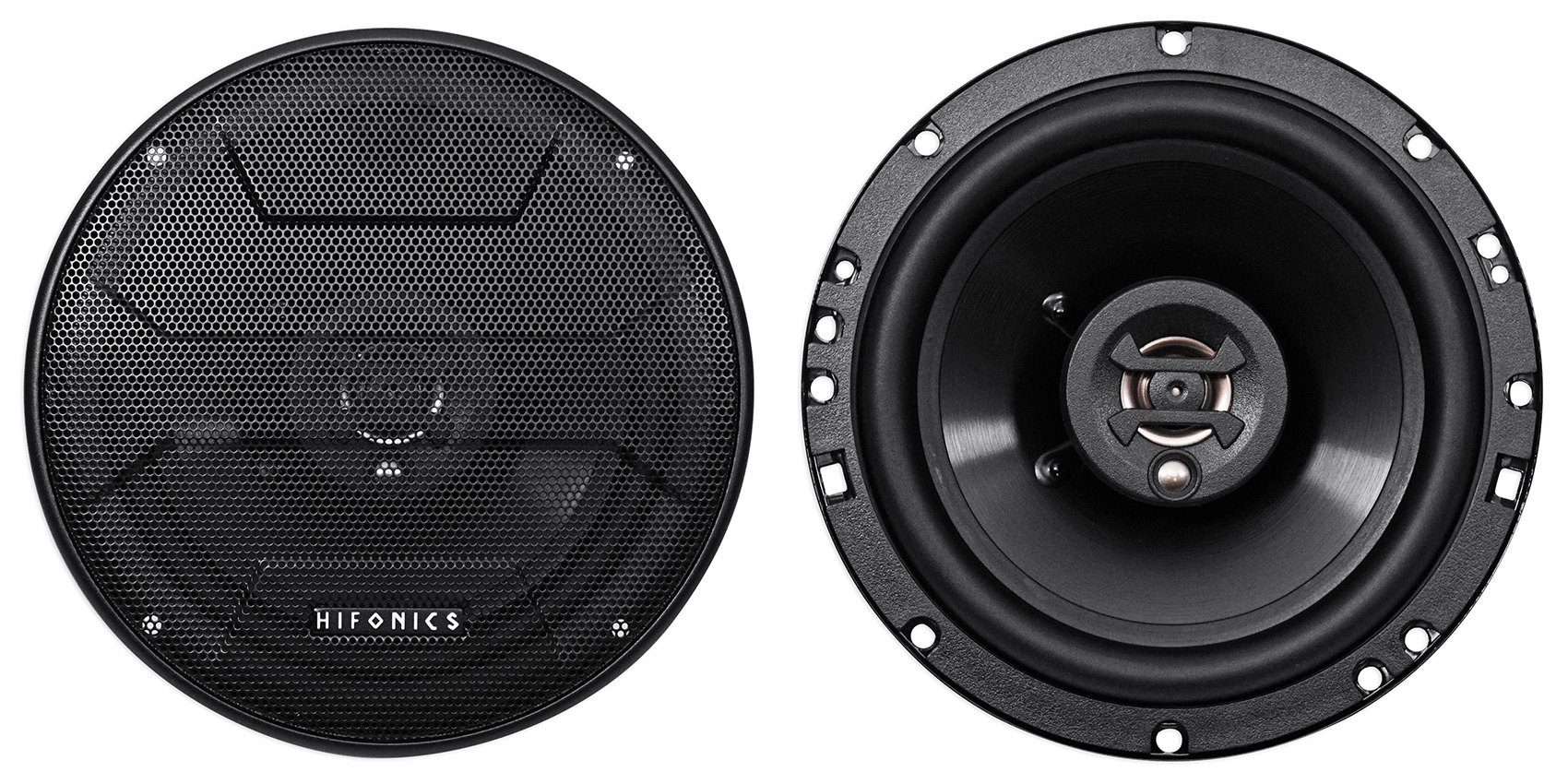 Hifonics Zeus 6.5 inch 3 way car audio coaxial speaker system with Mylar dome tweeter and Alpha-Cellulose Poly Woofer Cones nylon surrounds (pair).