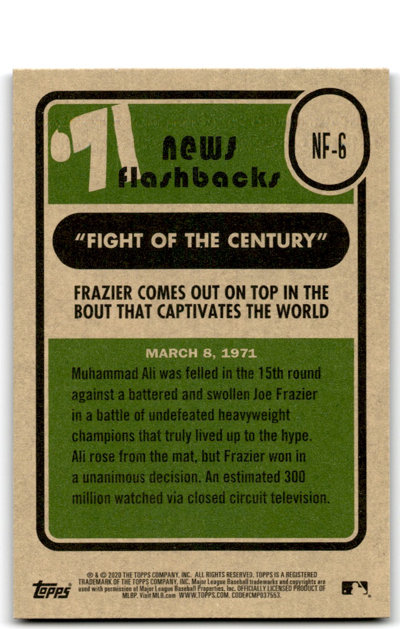 2020 Topps Heritage News Flashbacks '71 NF-6 Joe Frazier vs Ali