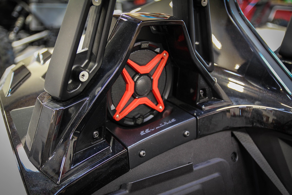 Marine speakers are great for boats; however boat speakers don’t get as wet, dirty or muddy as you do in a Side X Side. WP-A6 speakers feature an EPDM duo lock gasket surrounding the speaker to keep the water out and the sound pressure in. EPDM conforms to the surface and seals tight no matter where you ride, in direct UV, extreme heat, or in freezing temps. Reliability meets control with the Santoprene surround; a 30% lighter thermoplastic elastomer surrounding the polypropylene cone for exceptional volume and clarity in the harshest conditions.