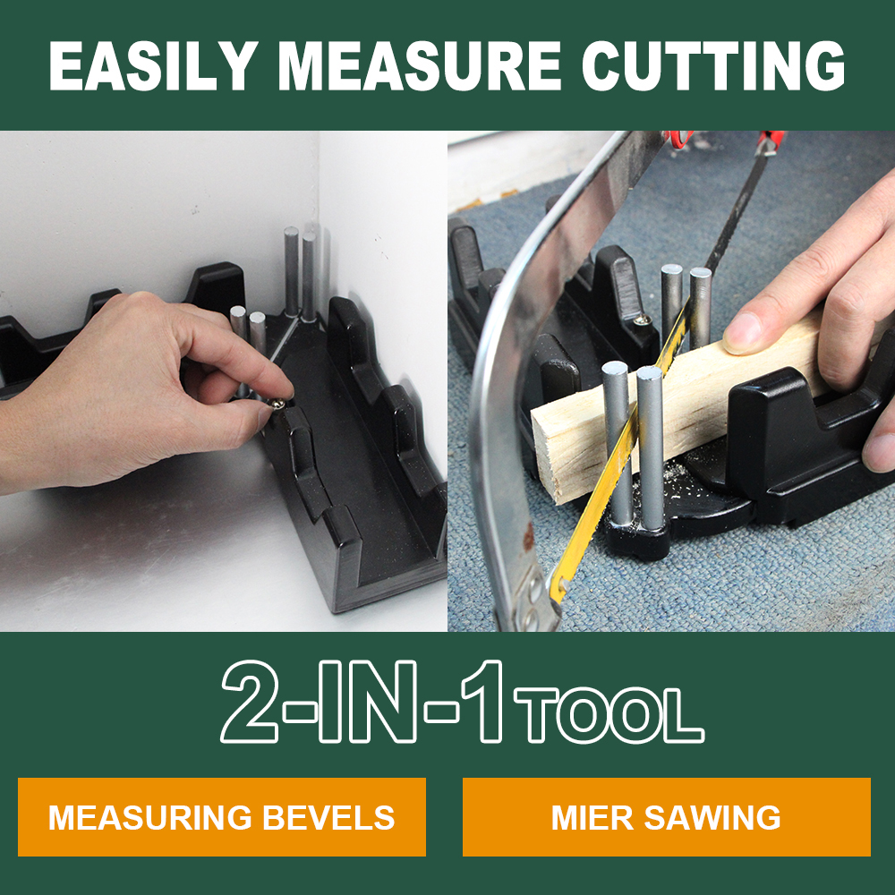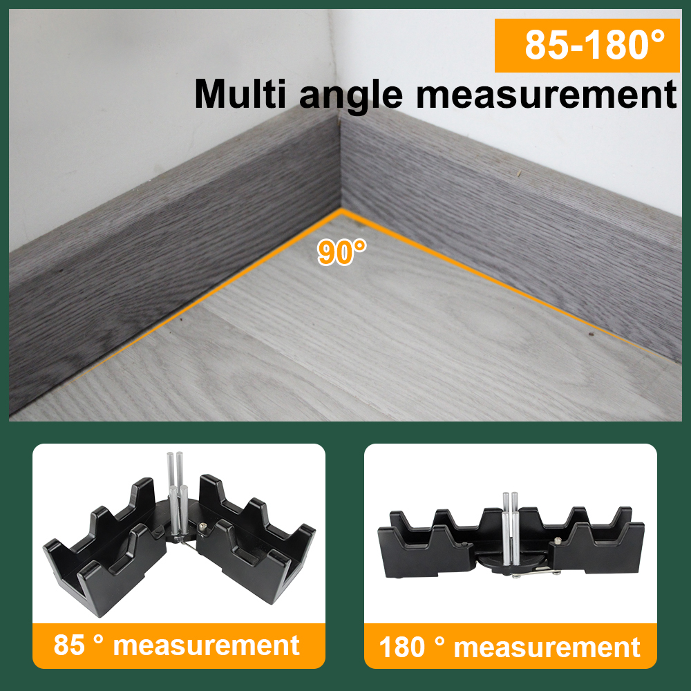 The two-in-one bevel measuring tool is used for measuring and sawing precision bevels. It is a practical and efficient product that can ensure that you perfectly fit the base plate without the need for bevel bevel gauges!
