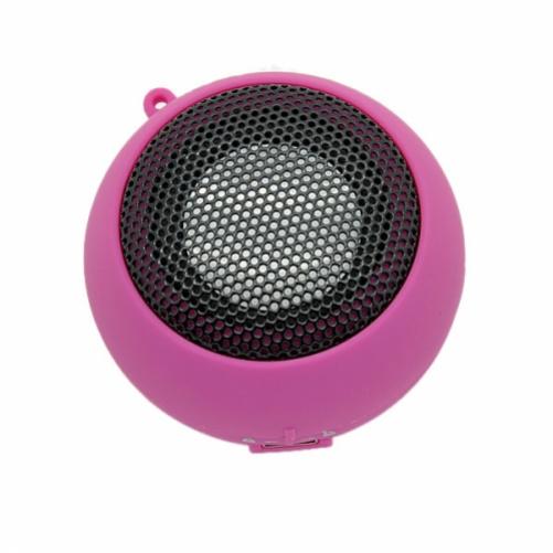 Wired Portable Universal Loud Speaker Pink Multimedia Audio System Rechargeable. Pink Hamburger 360 Degree Speaker is a compact travel speaker with big sounds! Using a revolutionary accordion style build, this little speaker opens up to create a chamber that produces resonant sound with amazing bass and clarity for a speaker of its size. It really needs to be heard to be believed. This superbly designed speaker is also powered by internal re-chargeable batteries that will keep belting out tunes for up to 8 hours and charge conveniently via Mini USB port. The Hamburger 360 Degree Speaker has pocket-sized portability with a huge bass chamber and compact cone design to create a large sound. With an internal built rechargeable li-ion battery this speaker will give you up to 8 hours of play time and also includes an LED power indicator. This 360 degree speaker projects fantastic sound in all directions and works with any audio source with a 3.5mm headphone jack such as iPods, MP3 players and laptops.Integrates a cone design with a custom-built speaker to project sound in all directions.