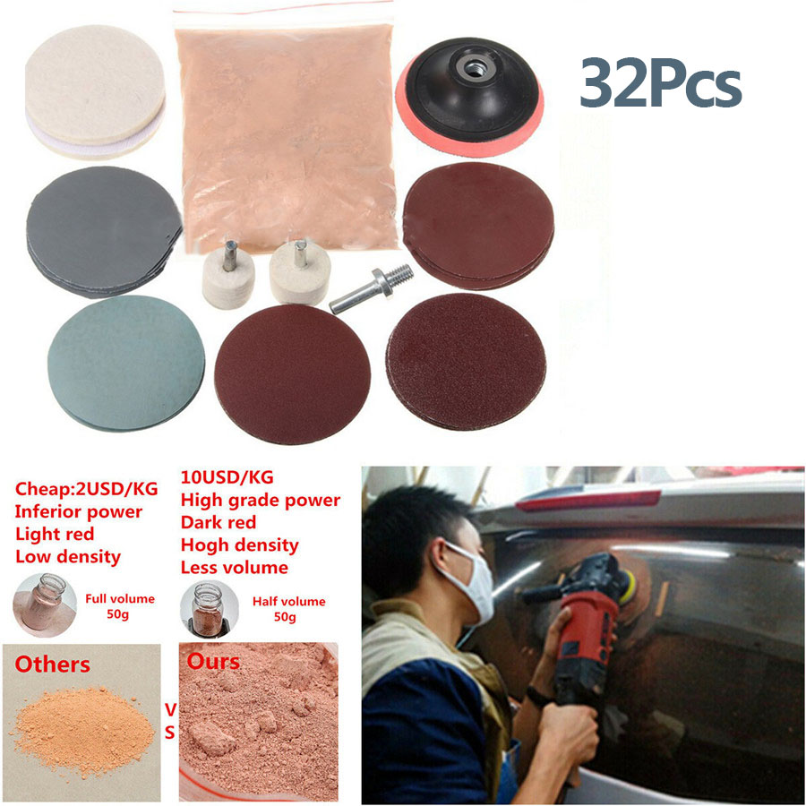 32x Car Glass Polishing Kit 8 Oz Cerium Oxide Powder w/ Polishing Wheel Pads kit
