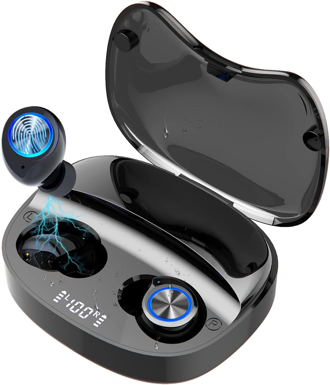 Wireless Earbuds, Bluetooth 5.0 Hi-Fi Stereo Headphones with Charging Case, LED Display, IPX7 Waterproof Earphones, Can be Used as Portable Charger, in-Ear/Built-in Mic Headset for Sports, Black