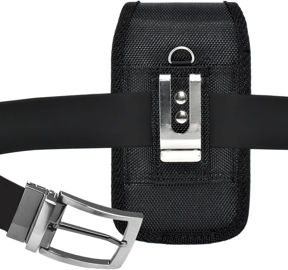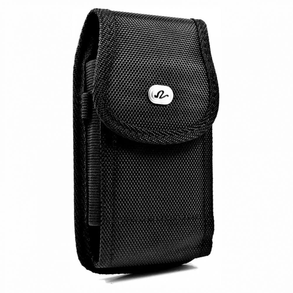 Black Vertical Rugged Canvas Case Cover Protective Pouch Holster Belt Clip. The Rugged Case Cargo safeguards your phone in all conditions. Made of extremely durable material and equipped with a fully enclosed bottom, it absorbs shocks and shields your items from the elements. With a strong clip that attaches securely over and under your belt and an extra belt loop. This Case for mobile phone provides secure storage for your cell phone. Dropping, breaking, or losing your mobile phone is not an option you need a durable, intuitive solution to ensure that your phone stays with you and in one piece. Our pioneering Clip Case Cargo keeps any mobile device protected, attached and accessible. Don't worry about dropping your phone or leaving it somewhere! Keep it attached to your pocket, belt, or purse! Clip it to your belt and you can secure your phone at all times. Pouch can be used in two ways: using the metal clip on the back to clip onto a belt or purse or car visor, and much more OR through the belt loop behind the metal clip, which provides an even more secure position through the belt with clip or loop.