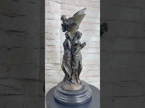 This exquisite vase featuring three nymphs is a captivating masterpiece that effortlessly commands attention in any setting. The nymphs, gracefully depicted with their long gowns spread around them, exude an aura of elegance and enchantment. Each nymph is intricately detailed, showcasing unique nuances in their attire and posture, creating a harmonious yet distinct composition that resembles blossoming flowers in motion. The addition of vines and flowers intertwining with the nymphs adds a whimsical and organic touch to the overall design.
