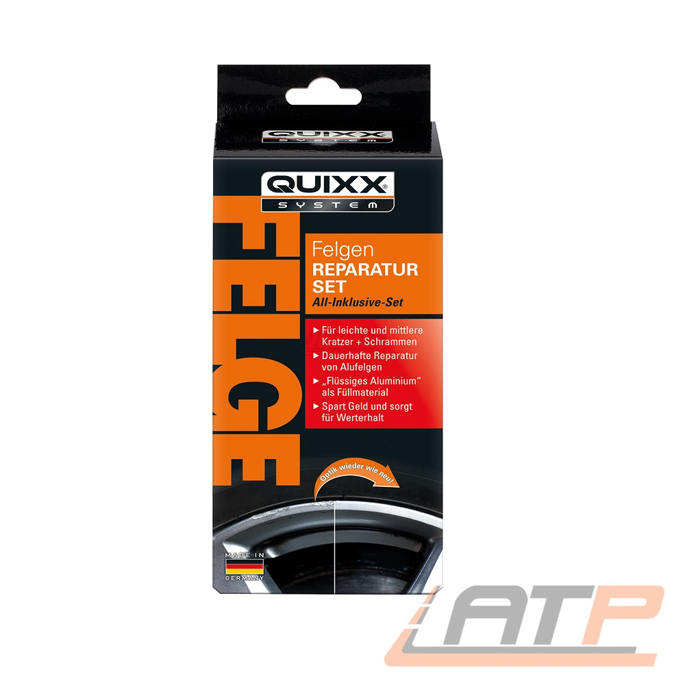 - Mit dem QUIXX Felgen Reparatur Set und seiner innovativen QUIXX Liquid Aluminium-Technologie haben Sie Schäden an Felgen schnell repariert