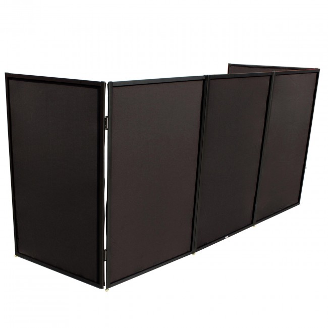 Facades provide the look of an elegant professional work area; hides cables help protect equipment and assists with managing crowd control for the DJ! The panels are strong and lightweight, easily removable for cleaning and can be interchanged for color combinations using the black and white scrims included. The scrims are machine washable! Each panel is scratch resistant aluminum, finished in all black.