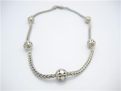 John Hardy Sterling Silver Dot Ball Wheat Station Necklace 16"