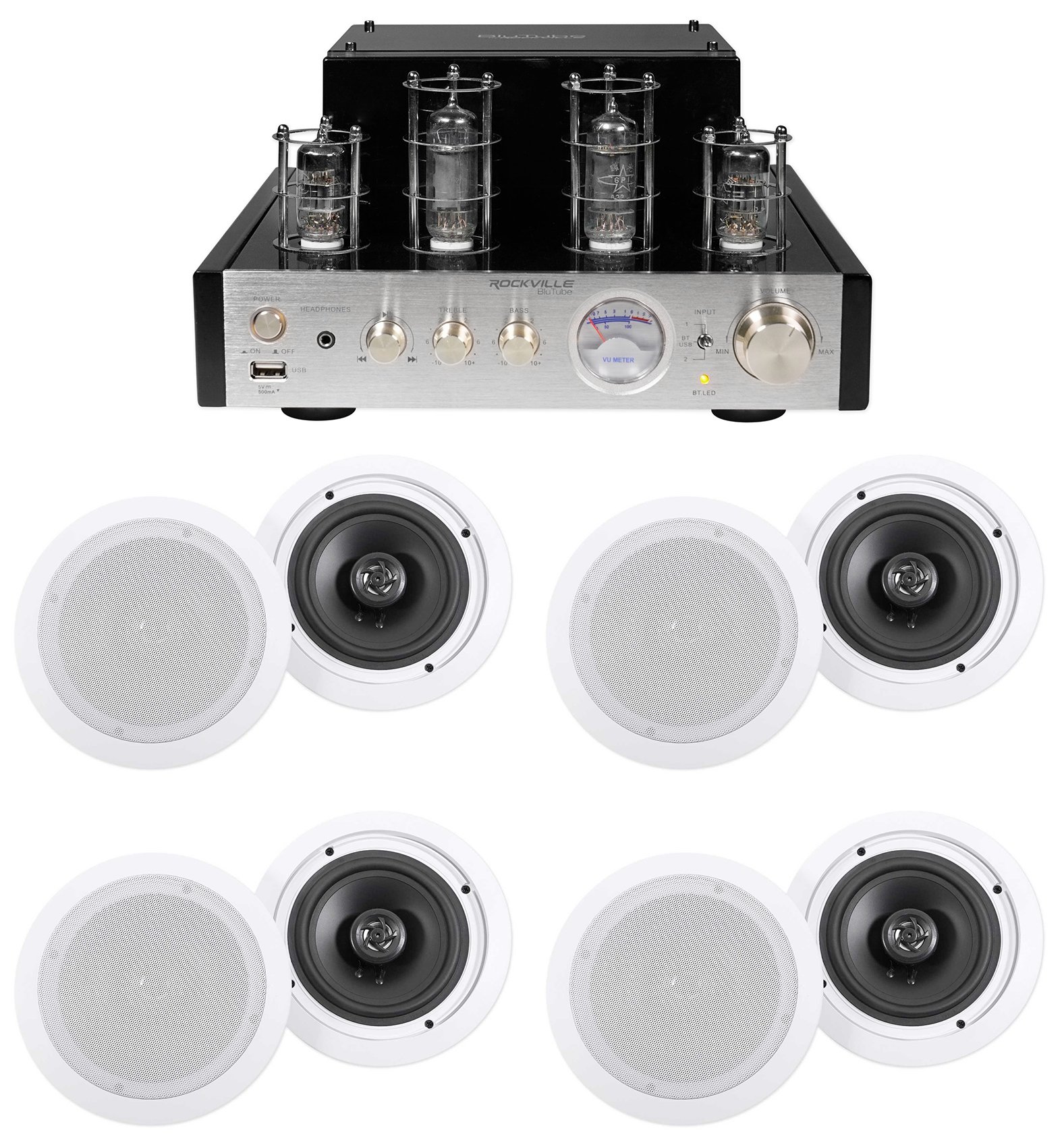 Rockville Tube Amplifier/Home Theater Receiver+(8) 6.5" White Ceiling Speakers