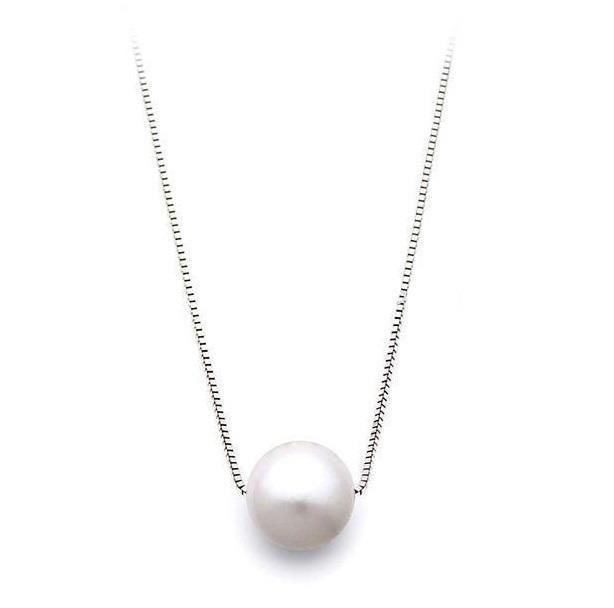 Gorgeous 16" white pearl necklace made with 14K solid white gold box chain.
