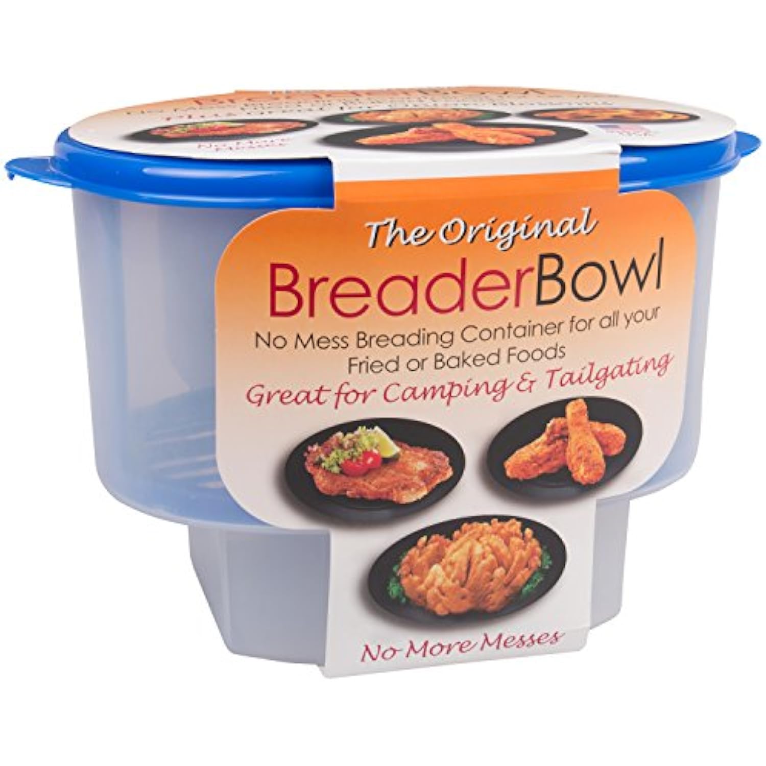 Product Description The Breader Bowl comes in three parts. The Bowl, where you place your breading and seasonings.The Sifter, where you place all your pre-moistened items to be breaded on. The Airtight Lid, to keep the breading and seasonings in.1. You place the breading and seasonings in the bowl. 2. You place all your lightly moistened meats and vegetables on the sifting tray. 3. Then you cover with the lid. 4. Now you just shake the bowl up, shake it down, remove the lid, and all your meats and vegetables are perfectly coated.Made of flexible, durable polypropylene, it is dishwasher safe, and stores away easily.Use it in the kitchen, at the lake, or at camp, the Breader Bowl is your guarantee to perfectly breaded meat, and vegetables every time. From the Manufacturer The Breader Bowl is great way to store your favorite breading or batter recipes fpr your favorite meats and vegetables.