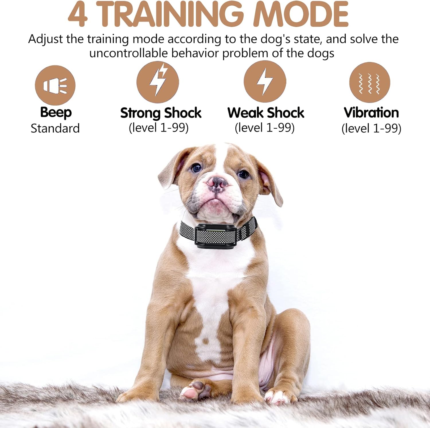 • 【4 Optional Modes for Training】: Wih 4 modes - Standard Tone, Vibration(1-99)levels, Weak Shock(1-99)levels & Strong Shock(1-99). You can choose different training modes according to your dog's growth or habits. Uncontrollable dog's behavior problems can solved with this dog collar training.