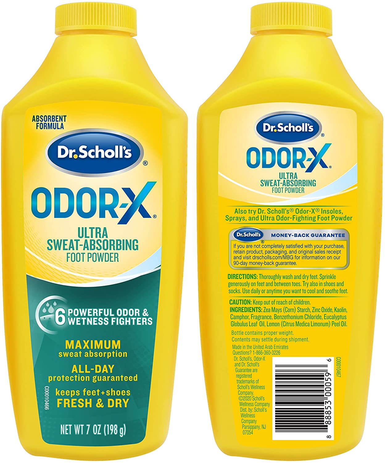 We specifically formulated Dr. Scholl’s® Ultra Sweat-Absorbing Foot Powder for people who suffer from sweaty feet. It absorbs wetness to help keep feet dry, comfortable, and refreshed with 6 powerful odor & wetness fighters for maximum sweat absorption. All-day protection is guaranteed to keep feet and shoes fresh and dry. Why does it work? The poorly ventilated environment of your shoes can trap foot perspiration and lead to foot odor. Dr. Scholl’s® Ultra Sweat-Absorbing Foot Powder for sweaty feet absorbs wetness to help control foot odor and keep feet dry, comfortable and refreshed. Use daily or anytime you want to cool and soothe feet.