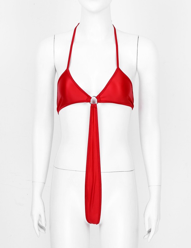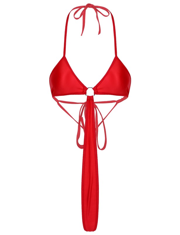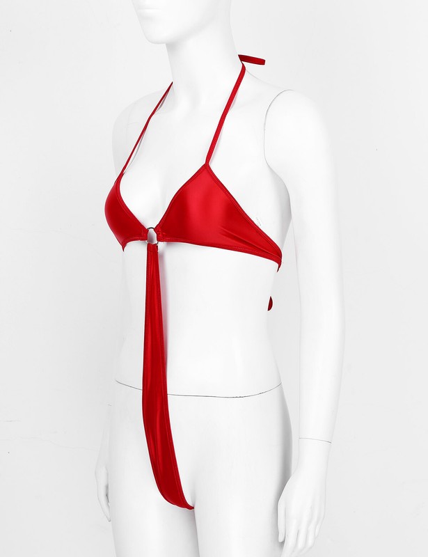Women One-piece Bikini Lingerie Halter Neck Lace-up Bodysuit Swimwear.