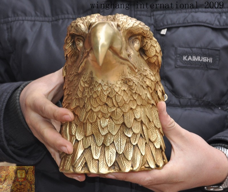 Here is an China Feng Shui Brass Copper Bird king Ferocious Eagle Hawk Goshawk Head Statue , As you can see the image, It is in good condition, and was created by skilled craftsmen in traditional style with fine handcrafts . This is a great piece of valuable collection, a valuable personal alter or a very good present. the handwork is very fine with incredible detailing. Don't miss out this chance to get it .Wish you good luck!