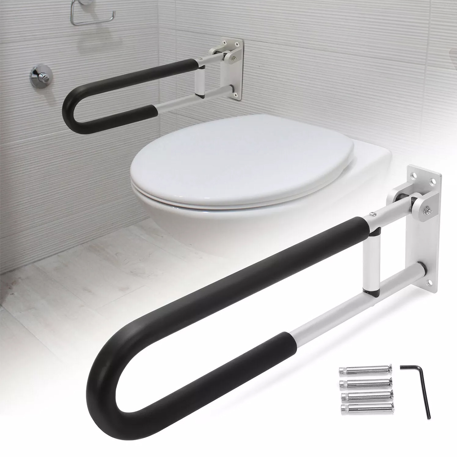 The toilet handrail consists of aluminum alloy handrail with a non-slip cover, with strong friction and better grip. Feels more comfortable than other handles.