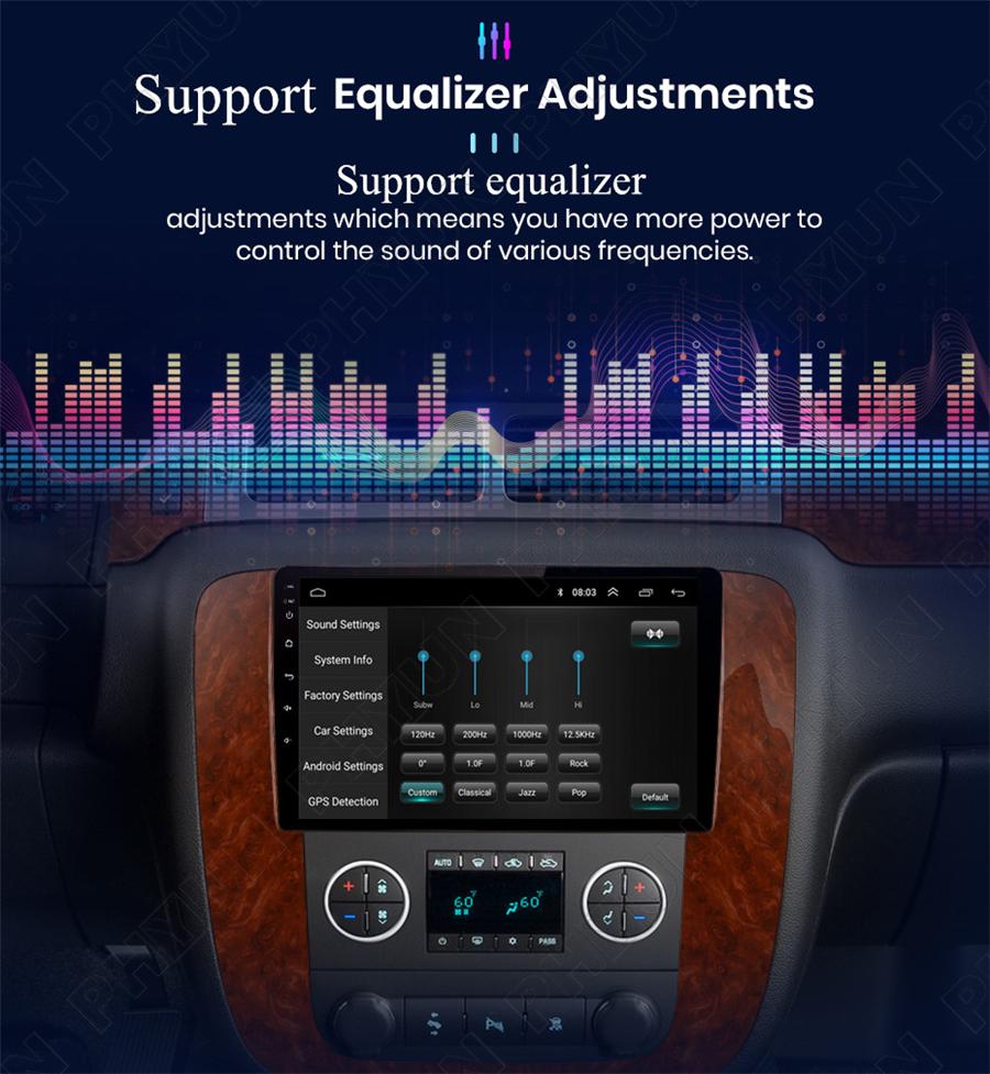 Setup | - WiFi/Hotspot/Bluetooth: Yes - Brightness level adjustable: Yes - Wallpaper: Wallpapers/Live Wallpapers/Gallery - Sound: Key Tone & Volume - Storage: Display Internal Storage/Nand Flash/Connected Device Storage - Apps: Running Apps display/force stop/uninstall - Security: Yes - Accounts: Yes - Languages and Input: more than 70 Languages and choose input method - Backup and Reset: Yes - Date and Time: Setting Date&Time by yourself or choose GPS/network-provided time - Accessibility: Yes - GPS: Yes, GPS application options/monitoring/sound mode/mixing ratio - Driving safety: Watching Video, Reversing X-mirror/Volume, Reversing Trajectory/radar Display, Rear view ruler - Amplifier: Rock/Pop/Jazz/Classic/Flat/Voice/Custom - Steering Wheel Control: Yes - About Device: Display Parameter Info. |