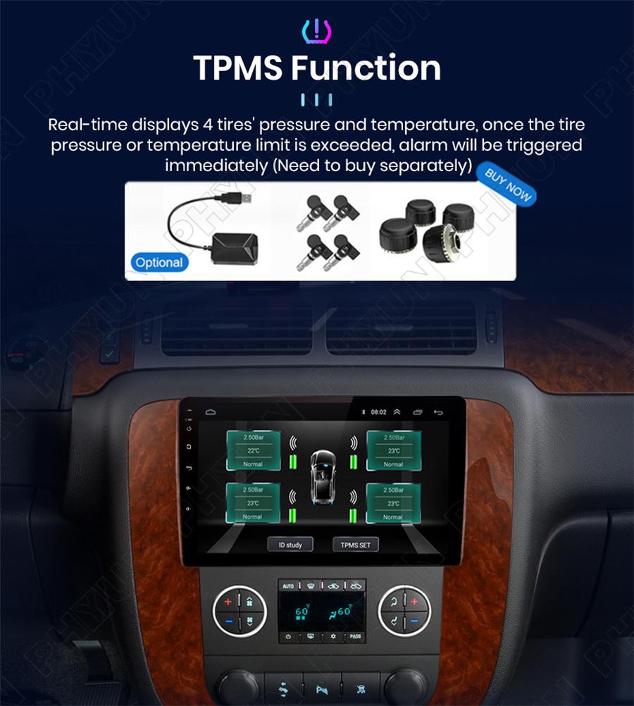 Additional | - Textbook: Could change font, font color, background color, bookmark, reading E-book while listening music - Photo Viewer: Support JPS, BMP, PNG, GIF etc. format. play by revolve, Powerpoint Support 4096*4096 Pixels - Wallpapers: 5 live wallpapers, 17 standard wallpapers, support DIY wallpaper from Gallery - APK Installer: Support Android Package installer - Support Torque Pro(OBD2 &Car): Yes, you can connect a Bluetooth OBD2 Scanner Tool to use this function - Support Mirror Link function: Yes, support screen mirroring from iPhone and android smartphone - Support TPMS: YES (Not Included) |