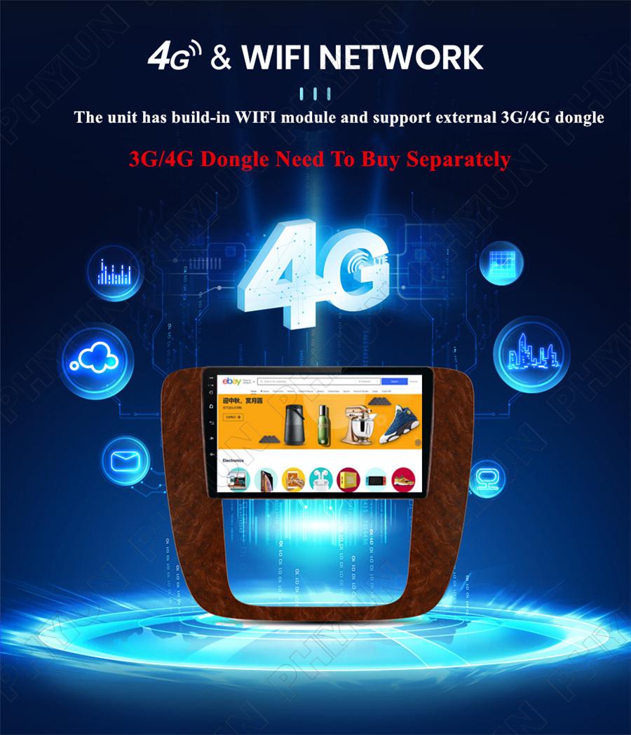 WiFi/3G/4G | - Connector: On the Back - WiFi: Built-in WiFi Modem, support 802.11b/g/n - Supports 4G & 3G Internet (4G Dongle and 3G Dongle are not included) |