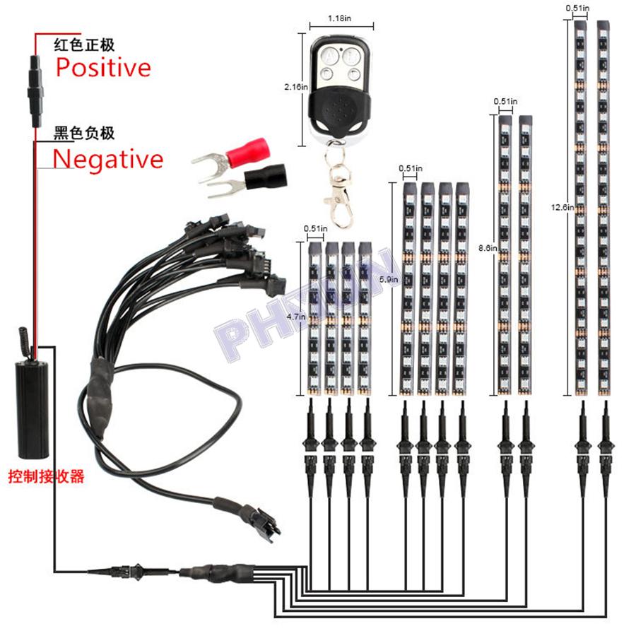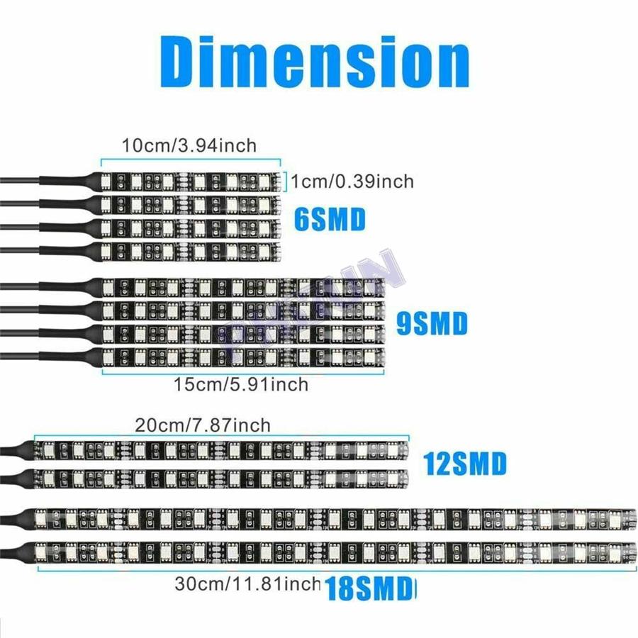 12pcs x RGB LED Strip Light (4x10cm,4x15cm,2x20cm,2x30cm).